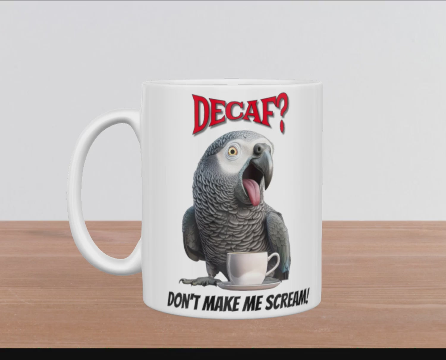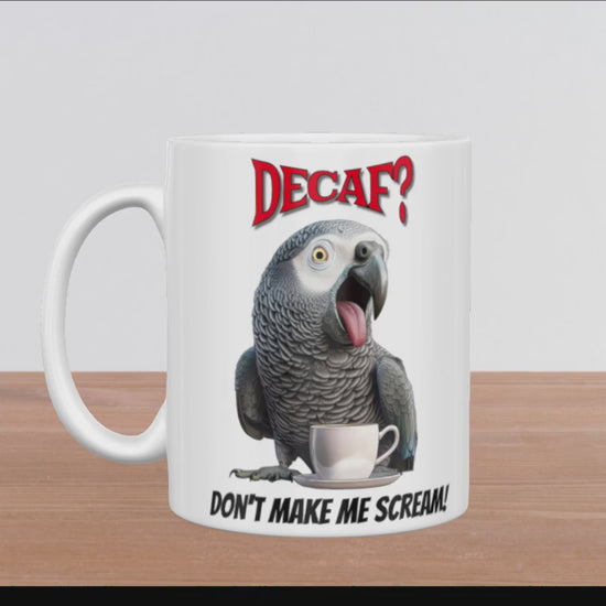 African Grey "Decaf? Don't Make Me Scream 15oz Ceramic Mug