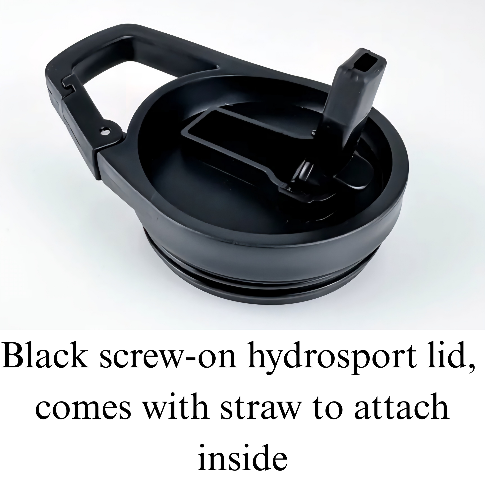Each tumbler comes with 2 different screw-on lids: a clear lid with slide sip that a straw can be inserted in (straw is included) and a black flip top hydro sport carabiner clip lid