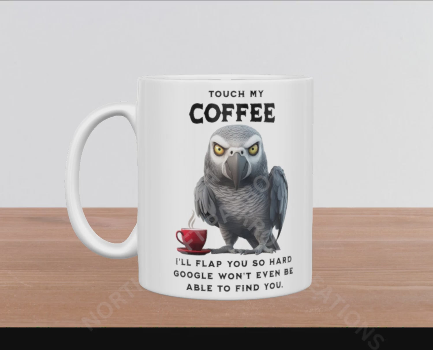 African Grey "Touch My Coffee I'll Flap You So Hard Google..." 15oz Ceramic Mug