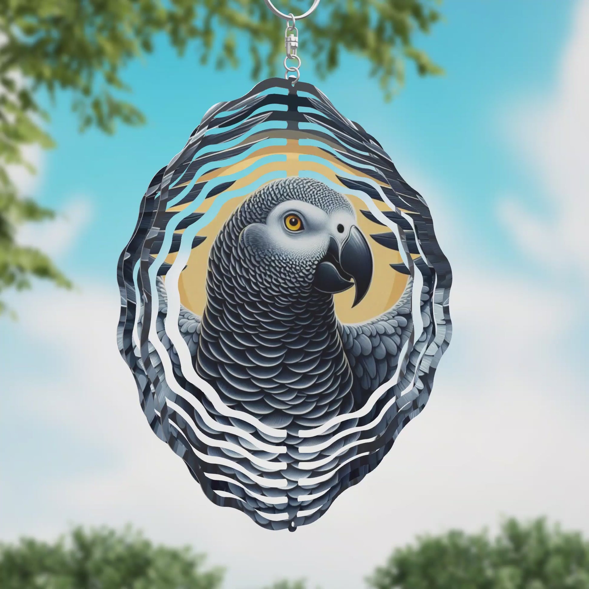 African Grey Wings in a Circle 8" or 10" Wind Spinner