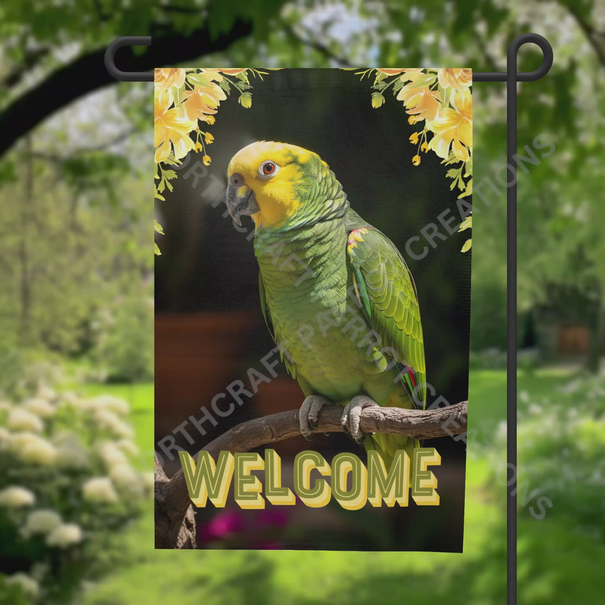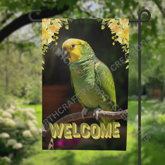 Amazon (Yellow Headed) with Yellow Flowers Welcome Garden Flag