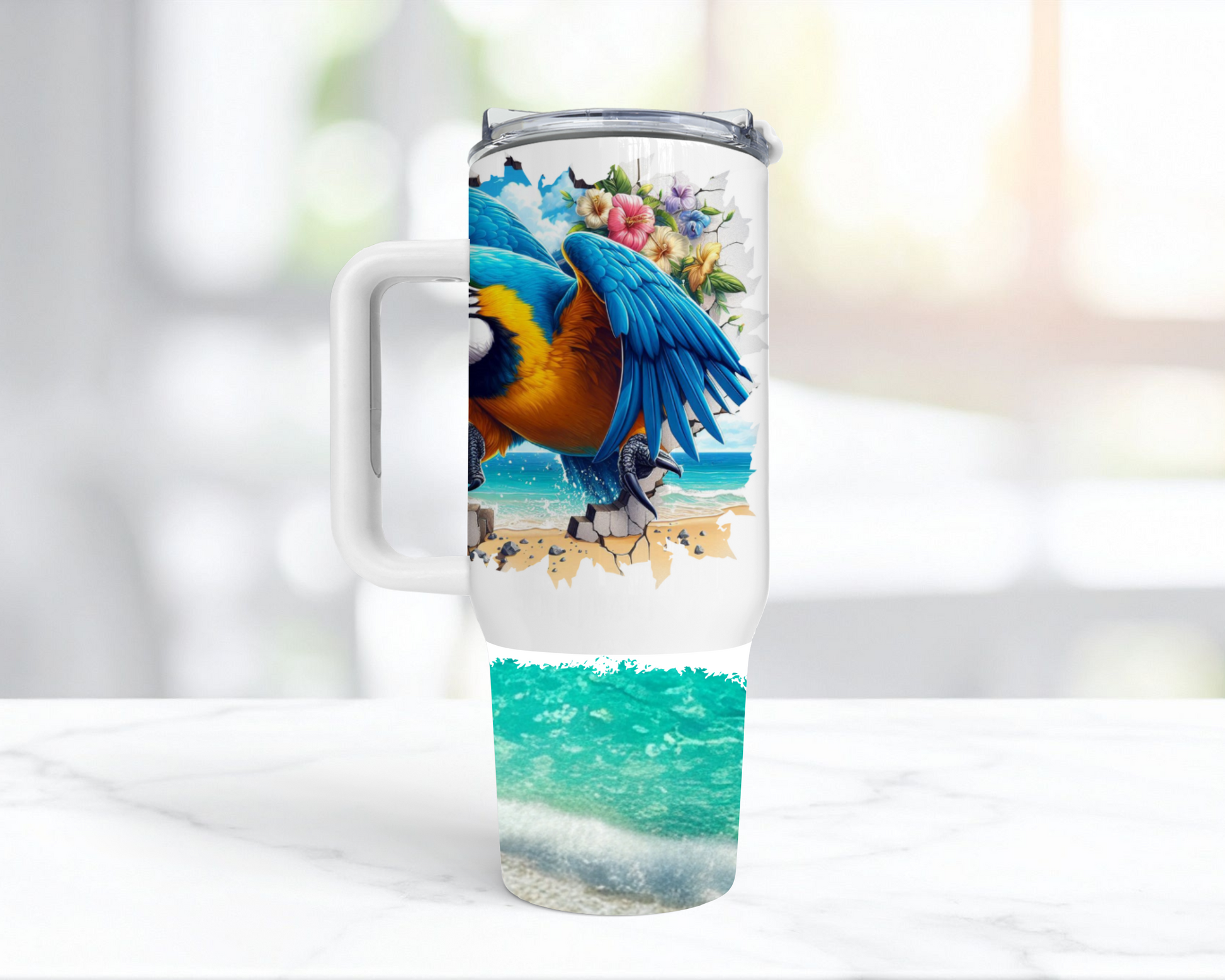 Experience every sip with this Blue and Gold Macaw 40oz Tumbler. Its striking design captures a vibrant macaw bursting through a beach wall, bringing energy and color to your drinkware. Crafted from insulated stainless steel, this tumbler keeps your beverages hot or cold for hours, perfect for outdoor adventures or daily use. Durable and eye-catching, it’s the ideal companion for those who appreciate both style and functionality. Make hydration an inspiring part of your day with this unique, high-capacity tumbler.