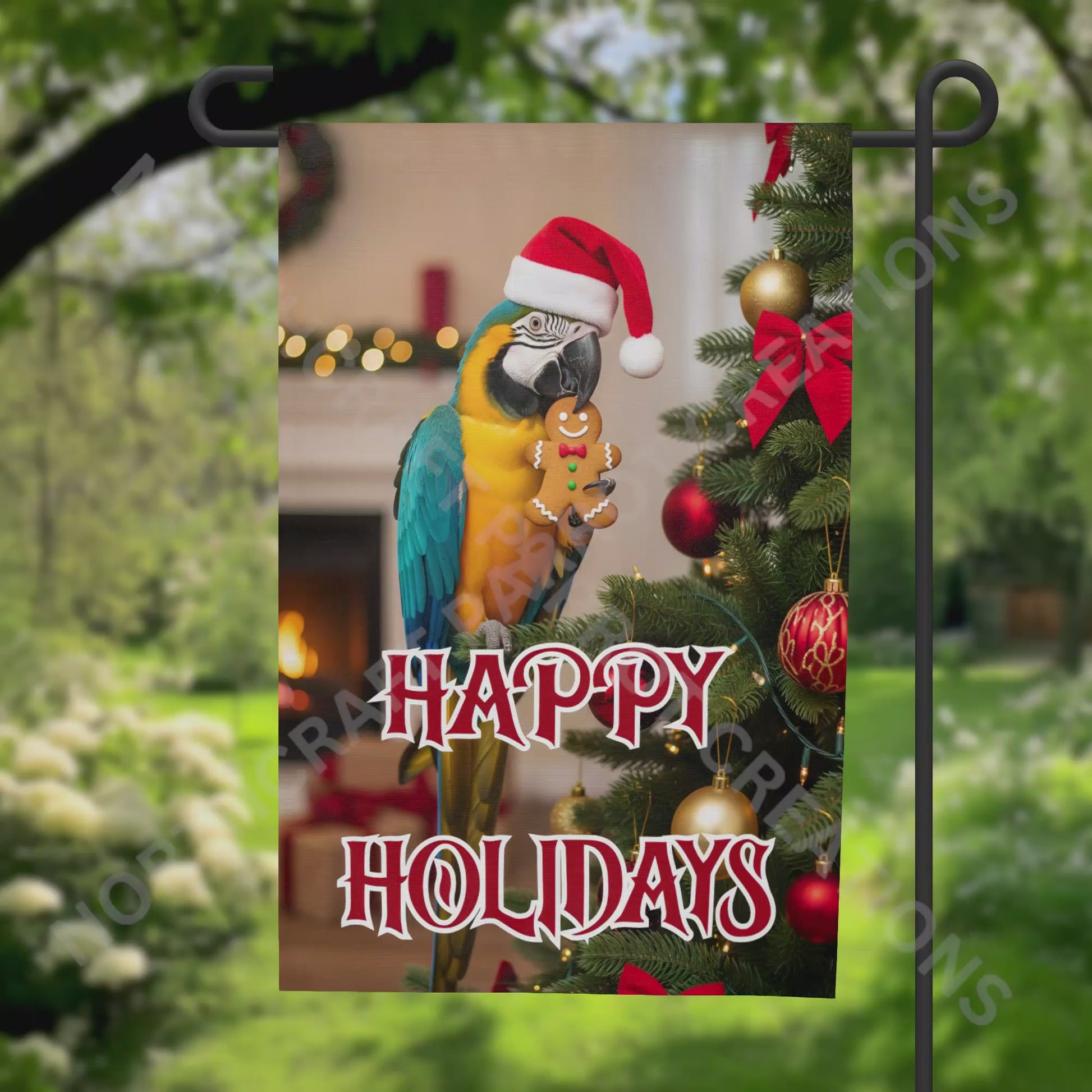 Blue and Gold Macaw Happy Holidays Christmas Garden Flag
