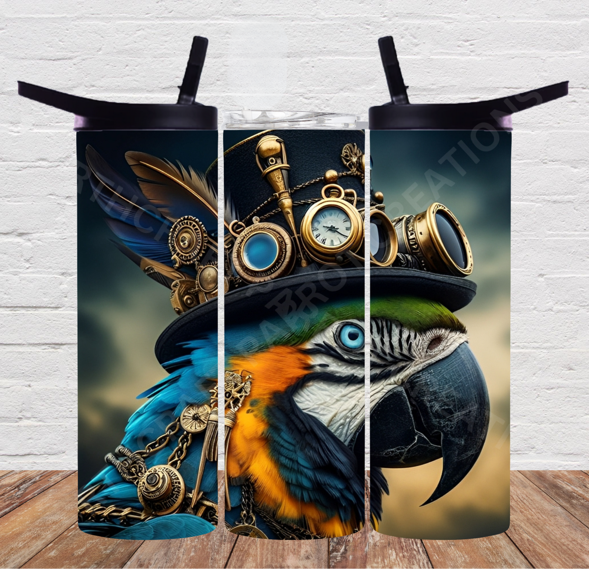 Embrace your love for unique style with this Blue & Gold Macaw tumbler, featuring a sophisticated steampunk theme. Available in 20oz or 30oz sizes with a duo-lid design, it keeps your drinks at the perfect temperature while adding a touch of quirky charm to your daily routine. Ideal for those who appreciate both art and practicality, this tumbler supports your busy lifestyle with durable, eye-catching functionality.