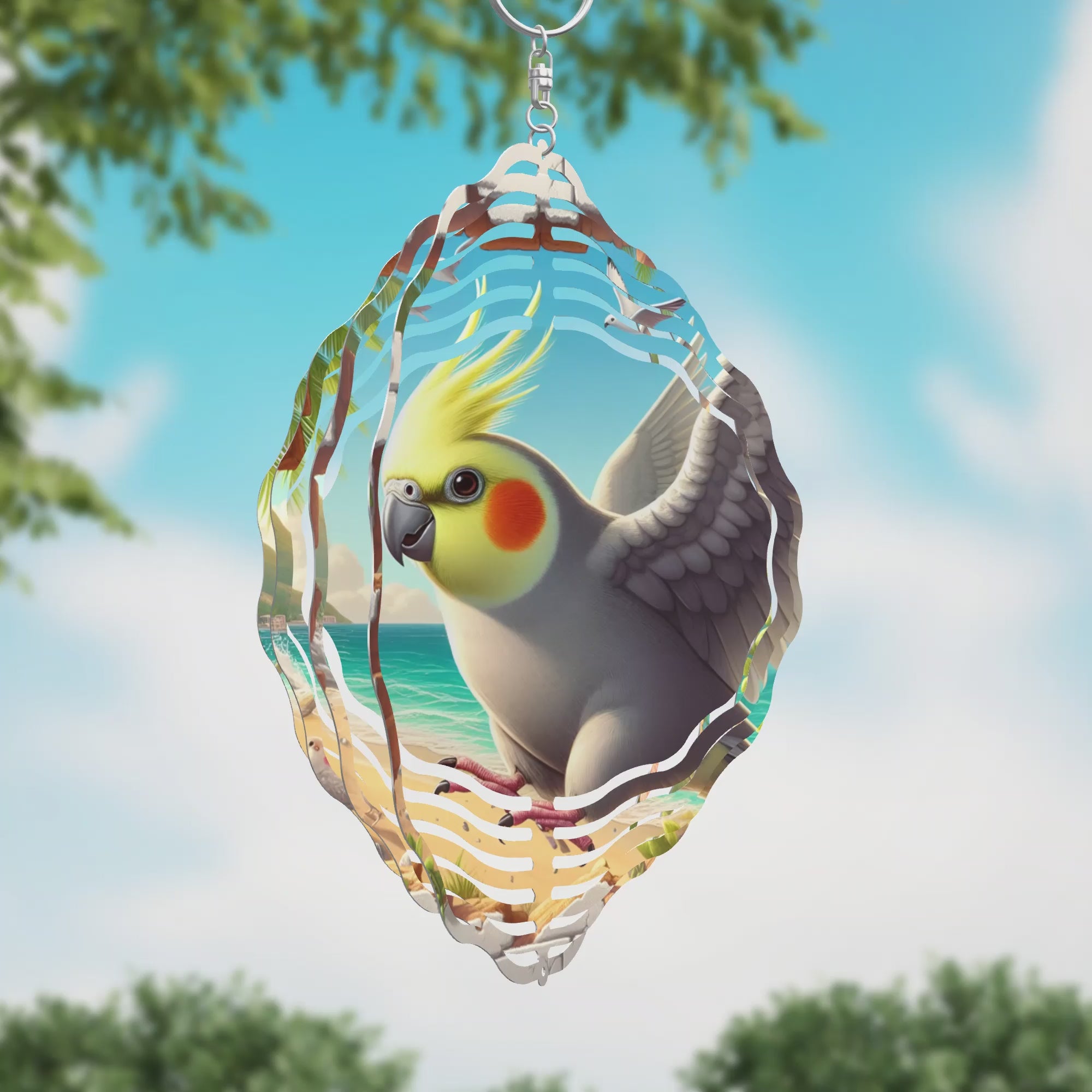 Cockatiel Hole in Wall Beach Scene 8" or 10" Wind Spinner