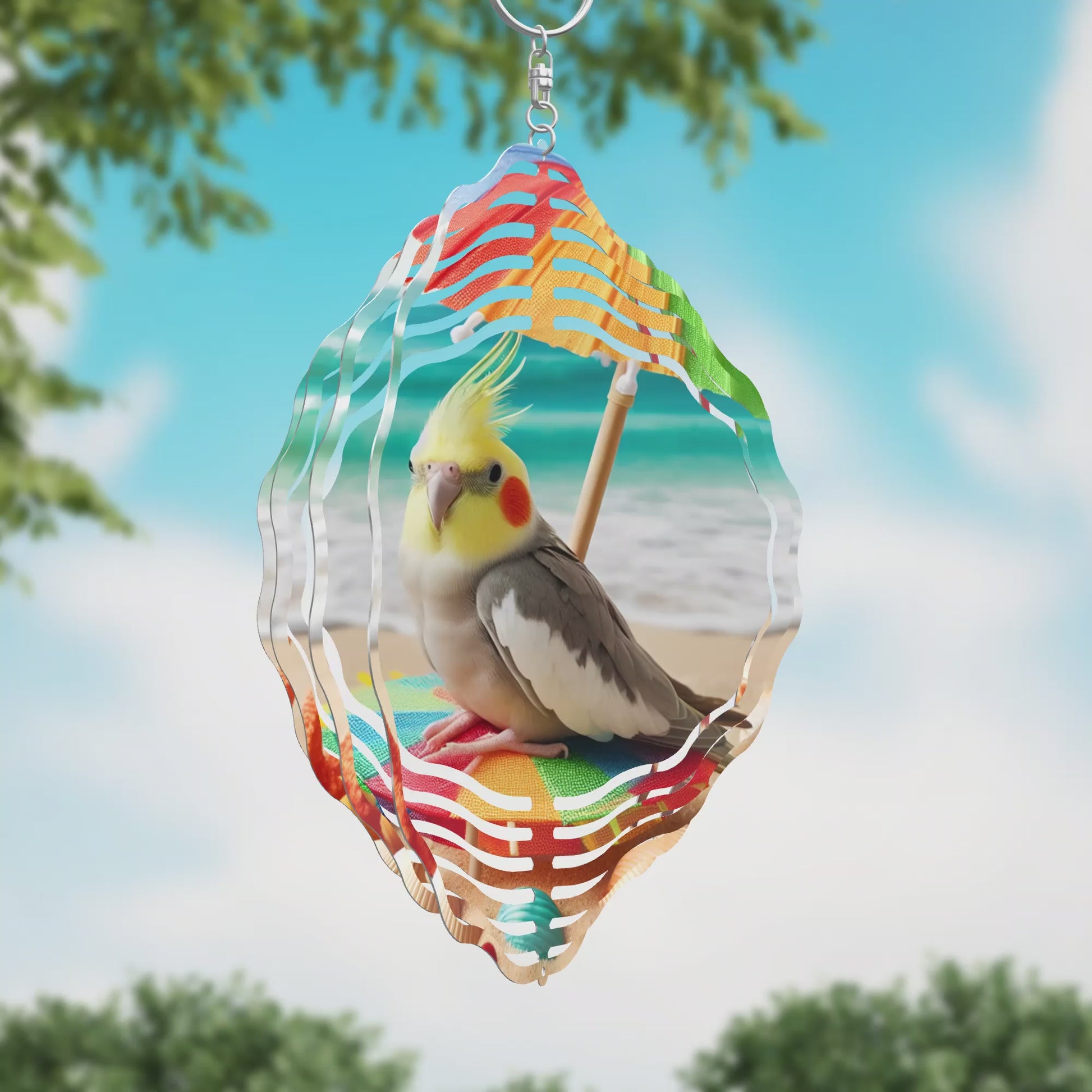Cockatiel on Beach with Umbrella 8" or 10" Wind Spinner
