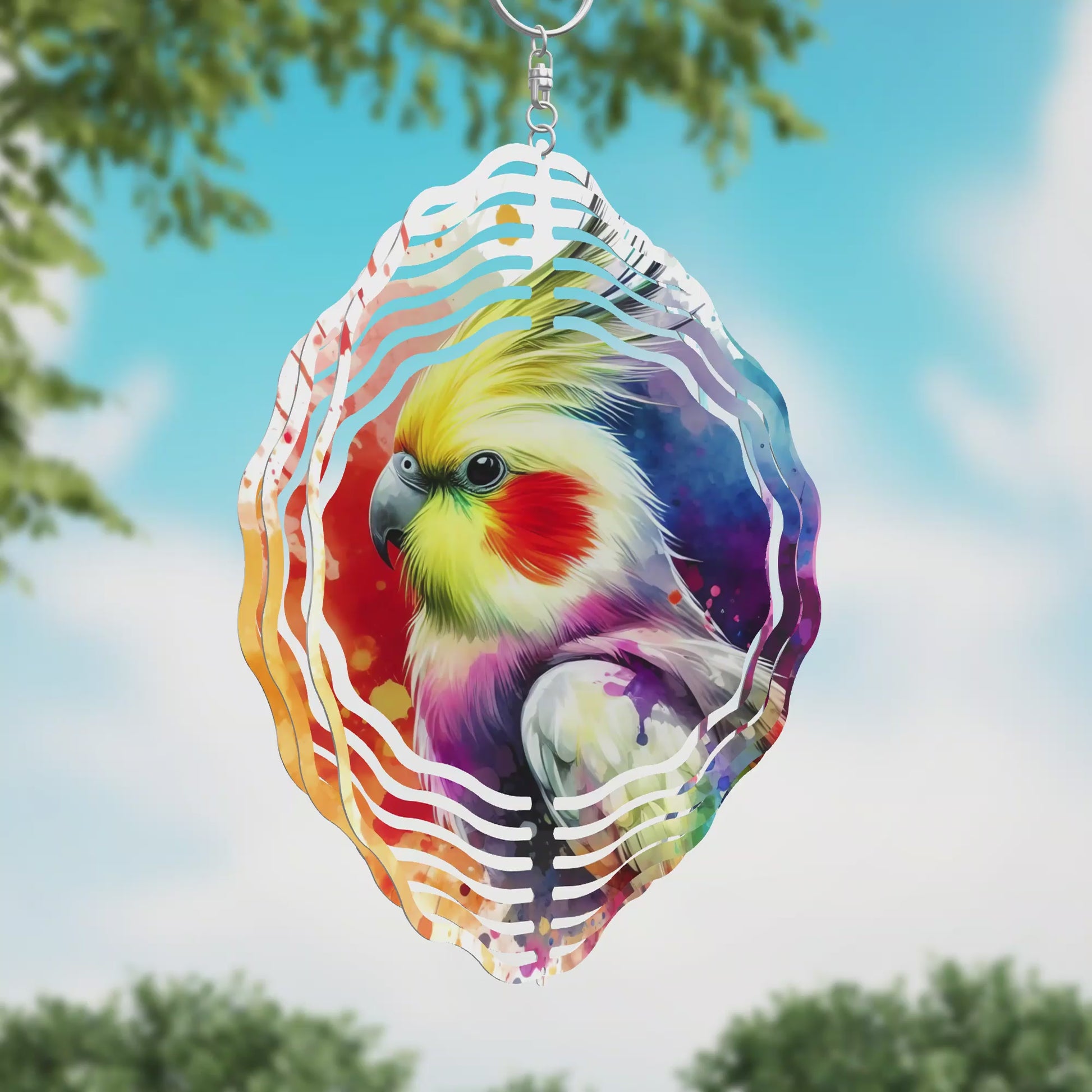 Bring a burst of color and whimsy to your outdoor space with the Cockatiel Paint Splatter Wind Spinner. Featuring a vibrant cockatiel perched against a lively paint splatter background, this spinner adds playful motion and charm to your garden or patio. Available in 8" or 10" sizes, it’s perfect for catching the breeze and brightening your day with every twirl.