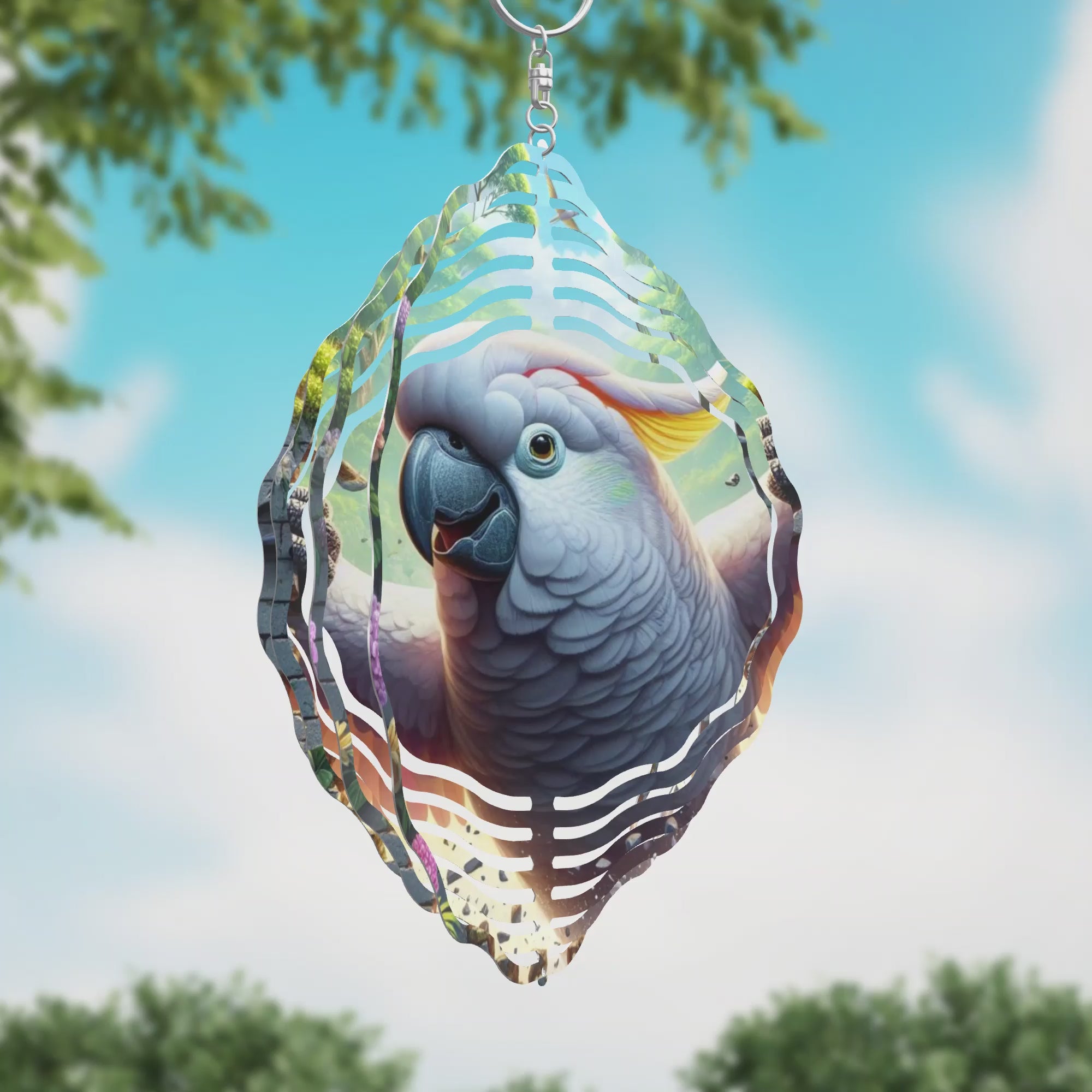 Brighten your outdoor space with this playful wind spinner featuring a cockatoo breaking through a wall with its claws. Perfect for adding a touch of fun and whimsy, it spins gracefully in the breeze, capturing the bird’s lively spirit and vibrant personality. A charming decoration that delights bird lovers and brings motion and joy to any garden, patio, or porch.