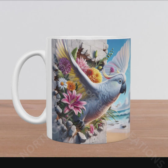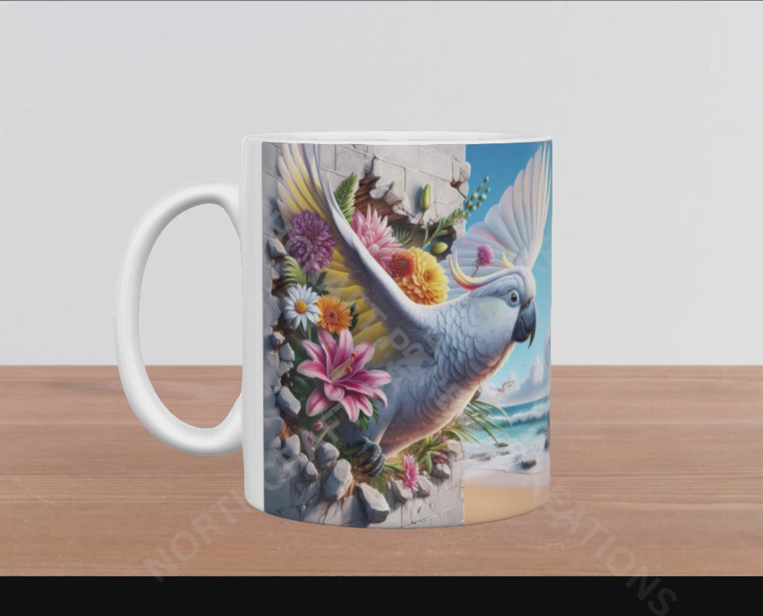 Cockatoo Hole in Wall with Beach and Flowers 15oz Ceramic Mug
