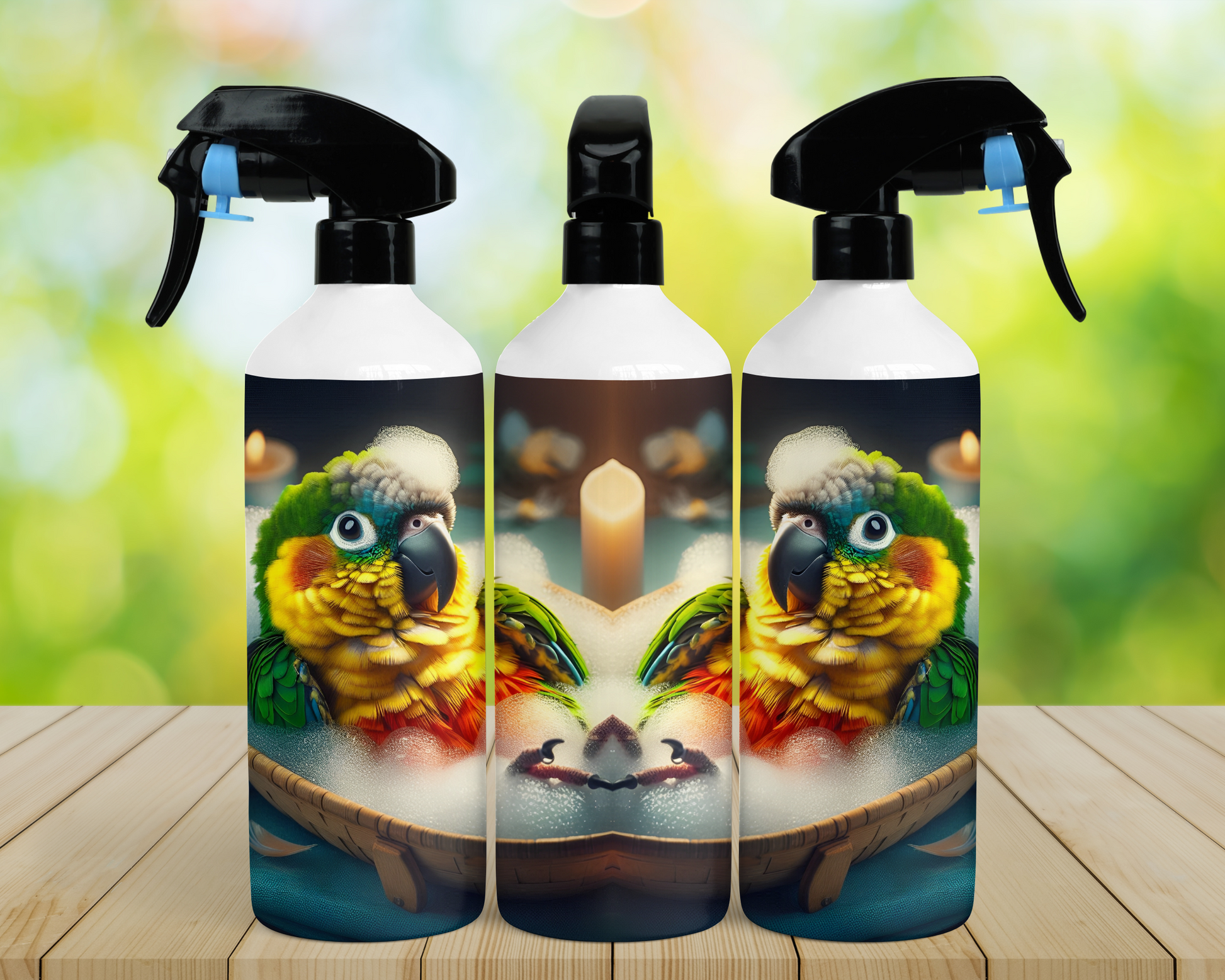 Bring some fun and care to your parrot’s grooming routine with this 16oz misting spray bottle, featuring an adorable green cheek Conure relaxing in a bubble bath. Perfect for gently showering your feathered friend, it helps reduce dust and dander—keeping both of you healthier and happier. Brighten up bath time with a playful design and an easy way to freshen up your parrot’s day!