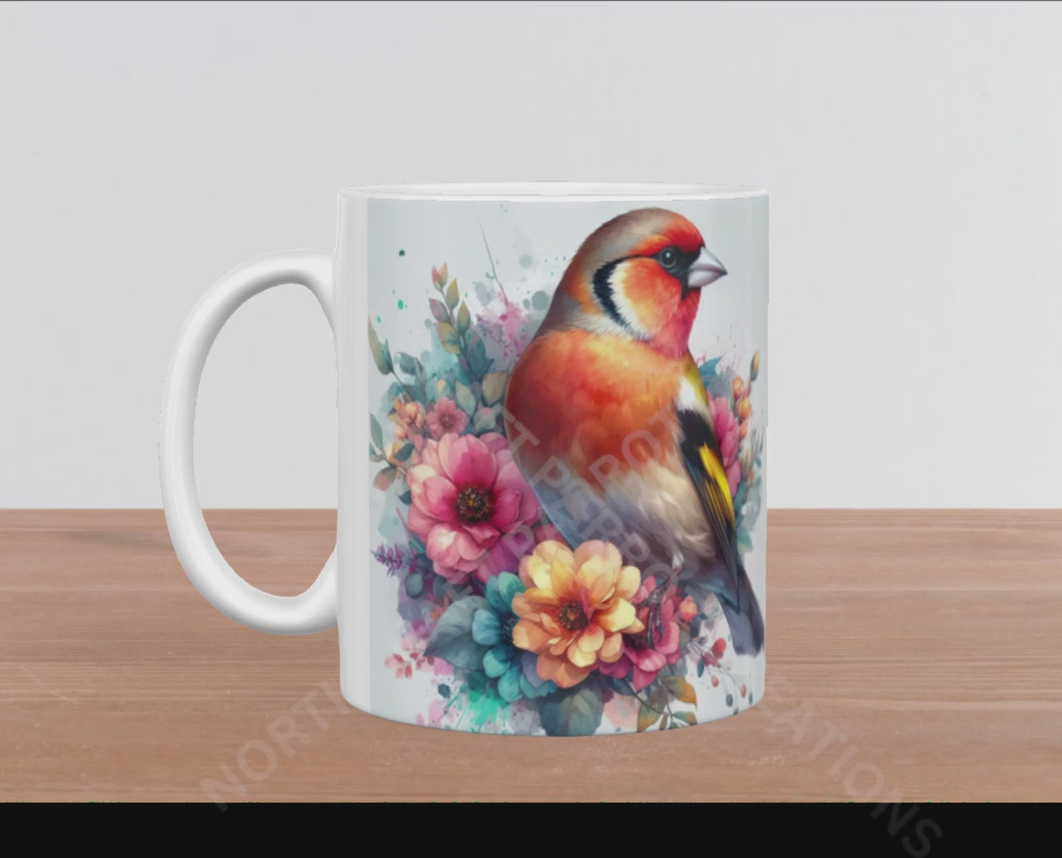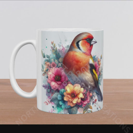 Elevate your daily coffee ritual with this 15oz ceramic mug, featuring a delicate watercolor illustration of a charming finch nestled amidst blooming flowers. Crafted for both beauty and practicality, it offers ample capacity for your favorite beverages while adding an elegant touch to your kitchen or office. This artful design blends nature’s grace with refined craftsmanship, making it a perfect companion for moments of calm and inspiration.