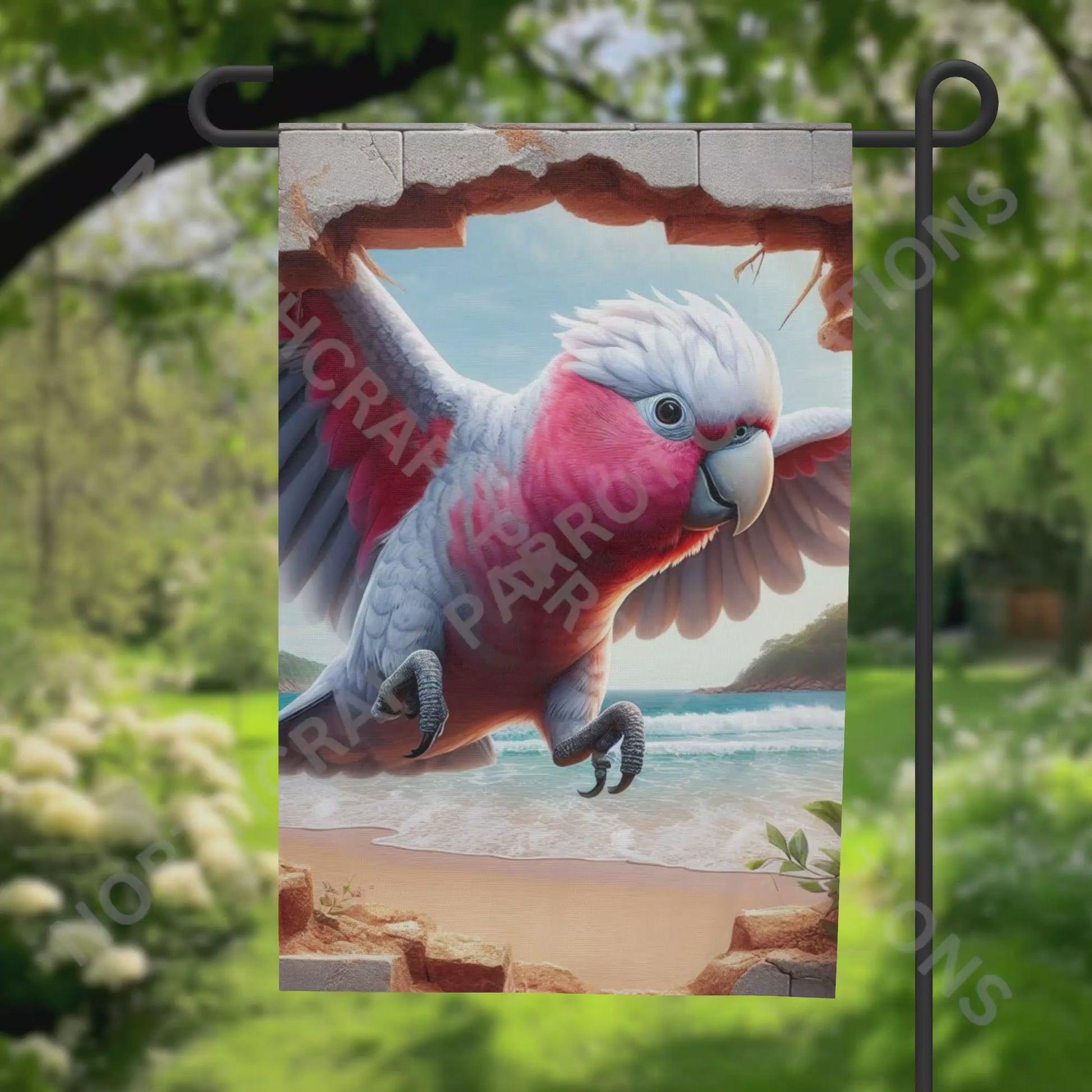 Galah (Rose Breasted) Cockatoo Flying through a Wall Garden Flag
