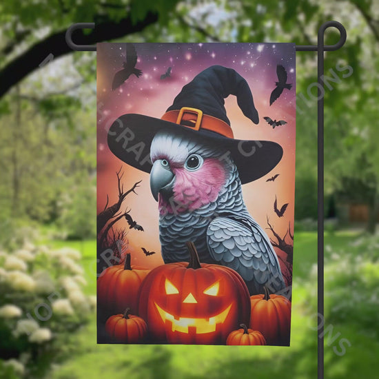 Galah (Rose-Breasted) Cockatoo with Witch Hat Halloween Gardn Flag