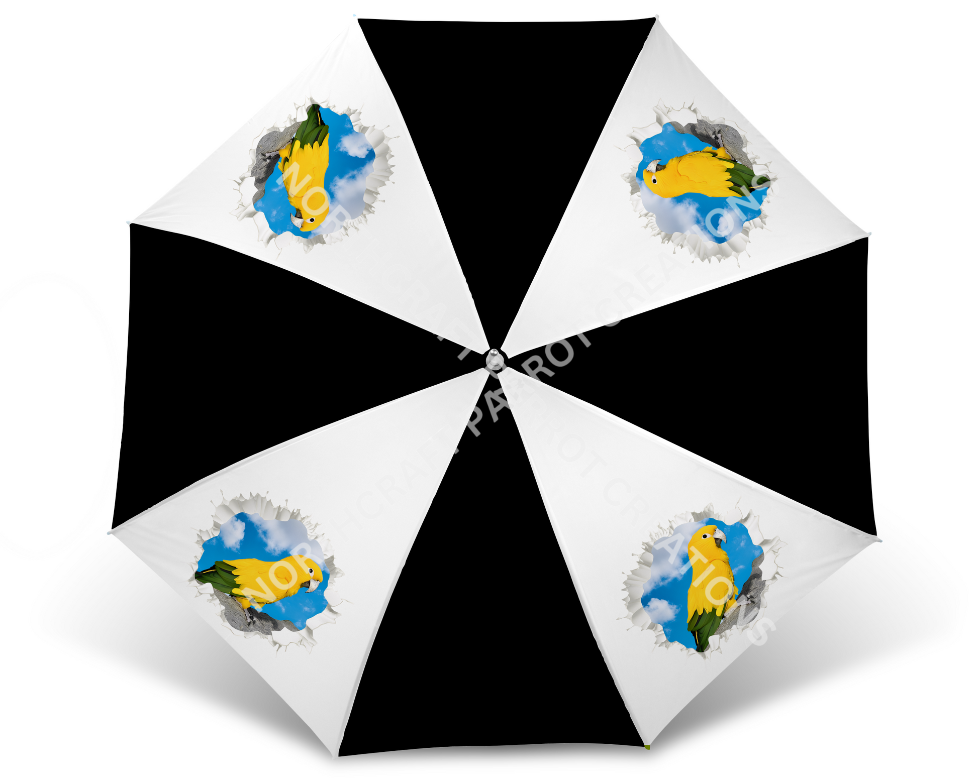 Add a cheerful touch to rainy days with this playful umbrella featuring a Golden Conure perched on a branch against a bright blue sky. The clever design gives the illusion that the bird is popping through the canopy, bringing a burst of tropical fun wherever you go. Lightweight and eye-catching, it’s sure to brighten up any cloudy day with a splash of color and personality.
