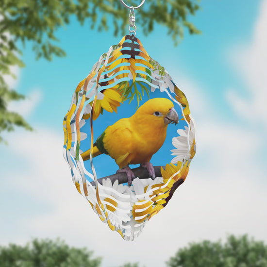 Golden Conure with Sunflowers and Daisies 8" or 10" Wind Spinner