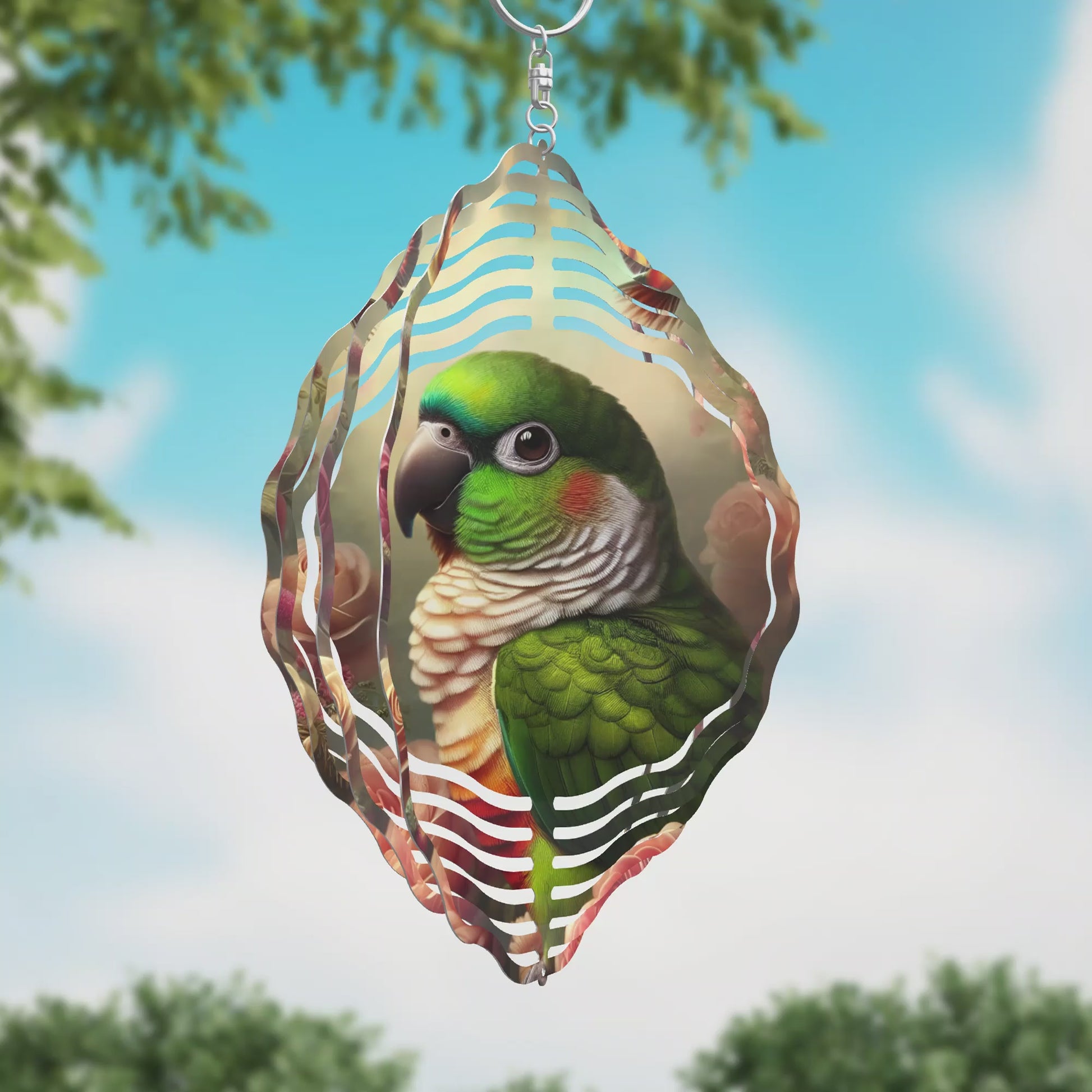 Green Cheek Conure in Flowers 8" or 10" Wind Spinner