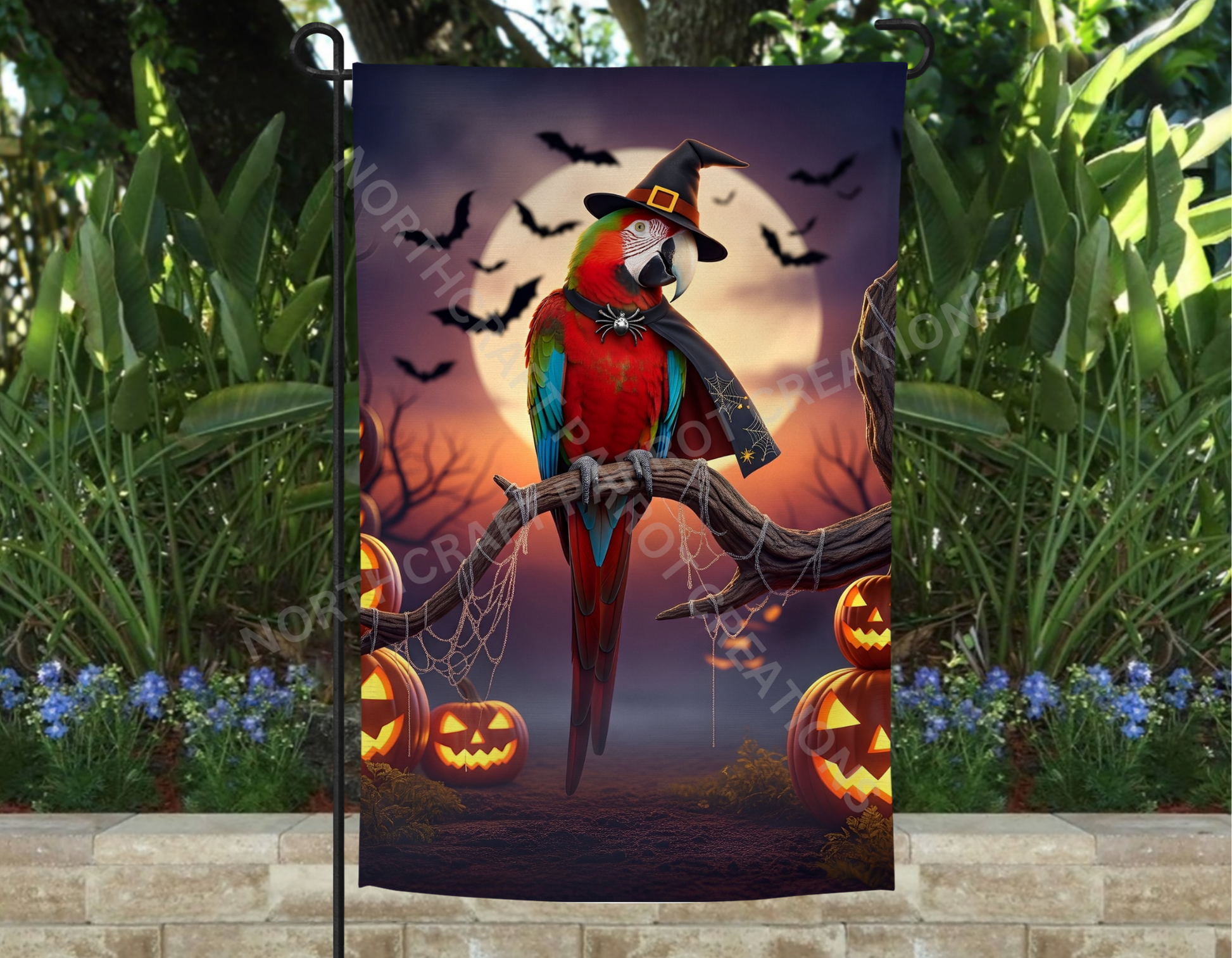 Green-Winged Macaw Full Moon Halloween Garden Flag