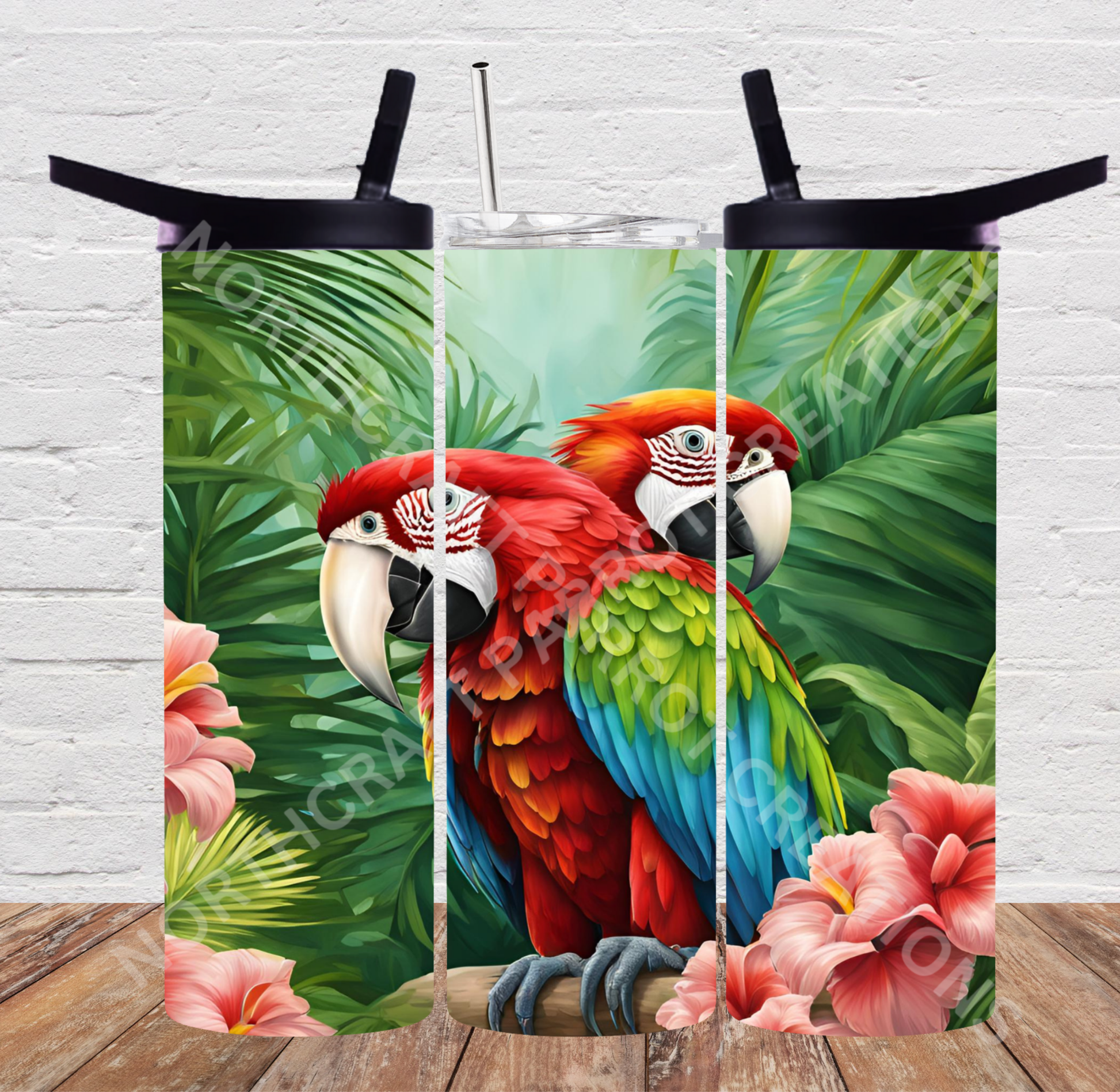 Green-winged Macaw (Greenwing) Pair in Rainforest 20oz or 30oz Tumbler
