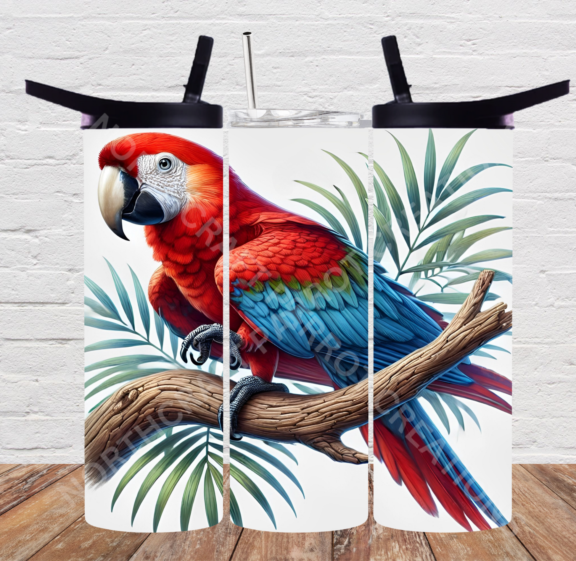 Celebrate the vibrant beauty of nature with this Green-winged Macaw tumbler. Featuring a striking macaw perched gracefully against lush ferns on a clean white backdrop, this 20oz or 30oz tumbler pairs artistry with everyday practicality. Durable and eye-catching, it keeps your drinks at the perfect temperature while showcasing a splash of rainforest charm wherever you go.