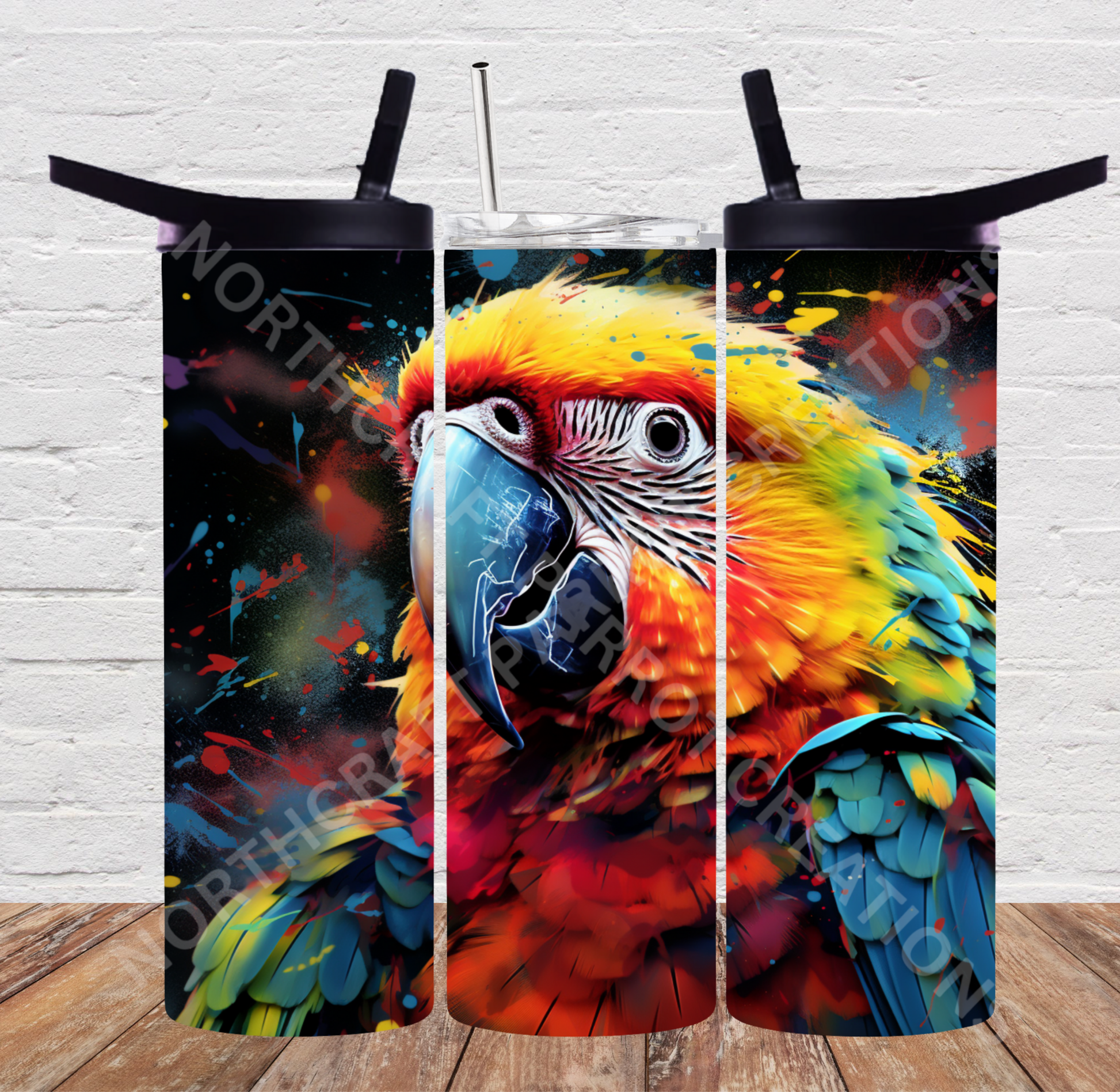 Experience the striking beauty of the Harlequin Macaw captured in vivid detail against a dynamic paint splatter backdrop. This design contrasts the macaw’s vibrant feathers with bold, colorful splashes on a deep black canvas, creating a captivating and energetic visual. It’s perfect for anyone who loves unique, artistic nature-inspired pieces that bring life and color into their space.