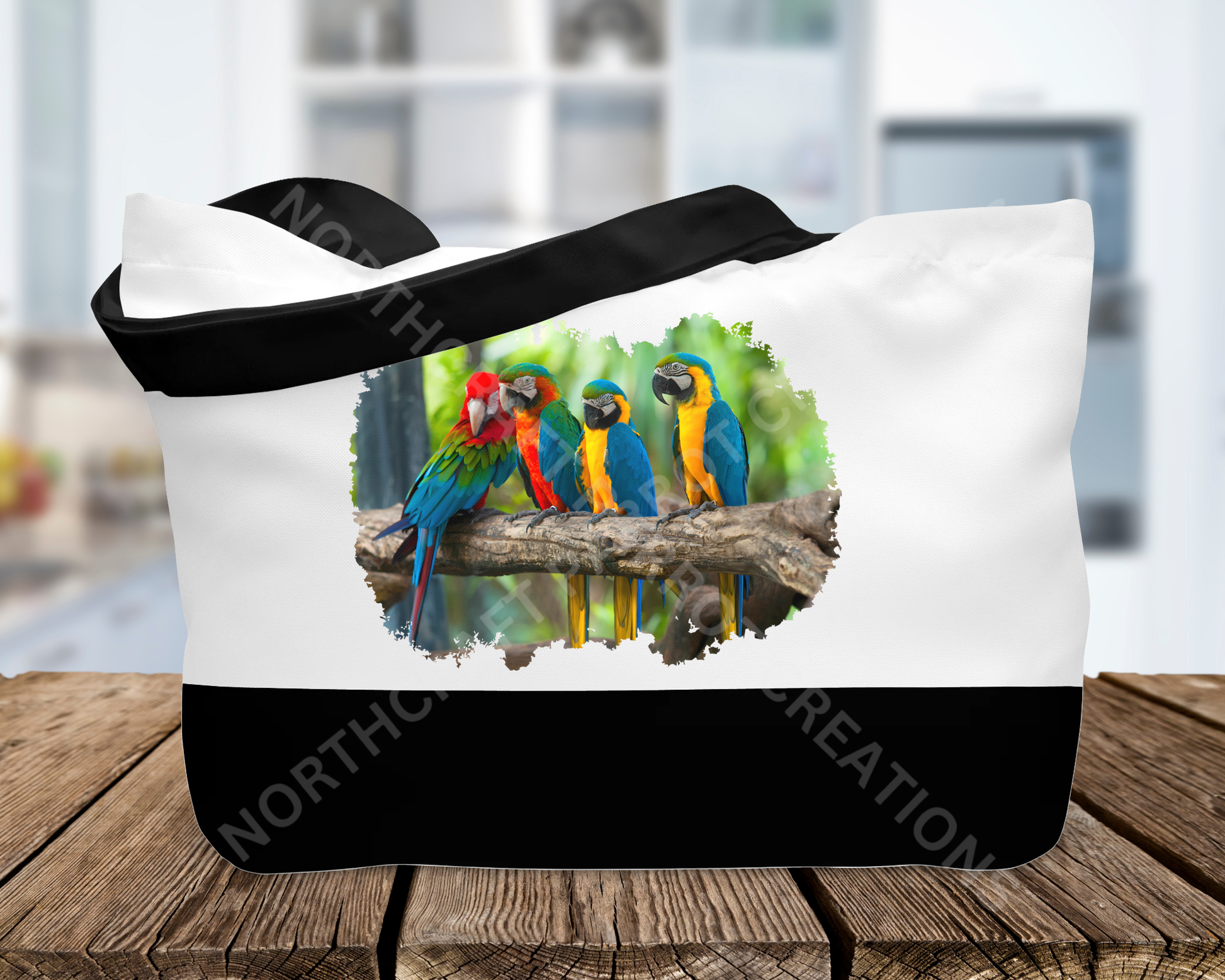 Carry your essentials with charm and durability using the macaw canvas tote bag. Showcasing four beautiful macaws perched on a branch, the image is enhanced with a distressed edge to add dimension and character. This spacious, sturdy canvas tote is designed to support your busy lifestyle while celebrating nature’s vibrant beauty.