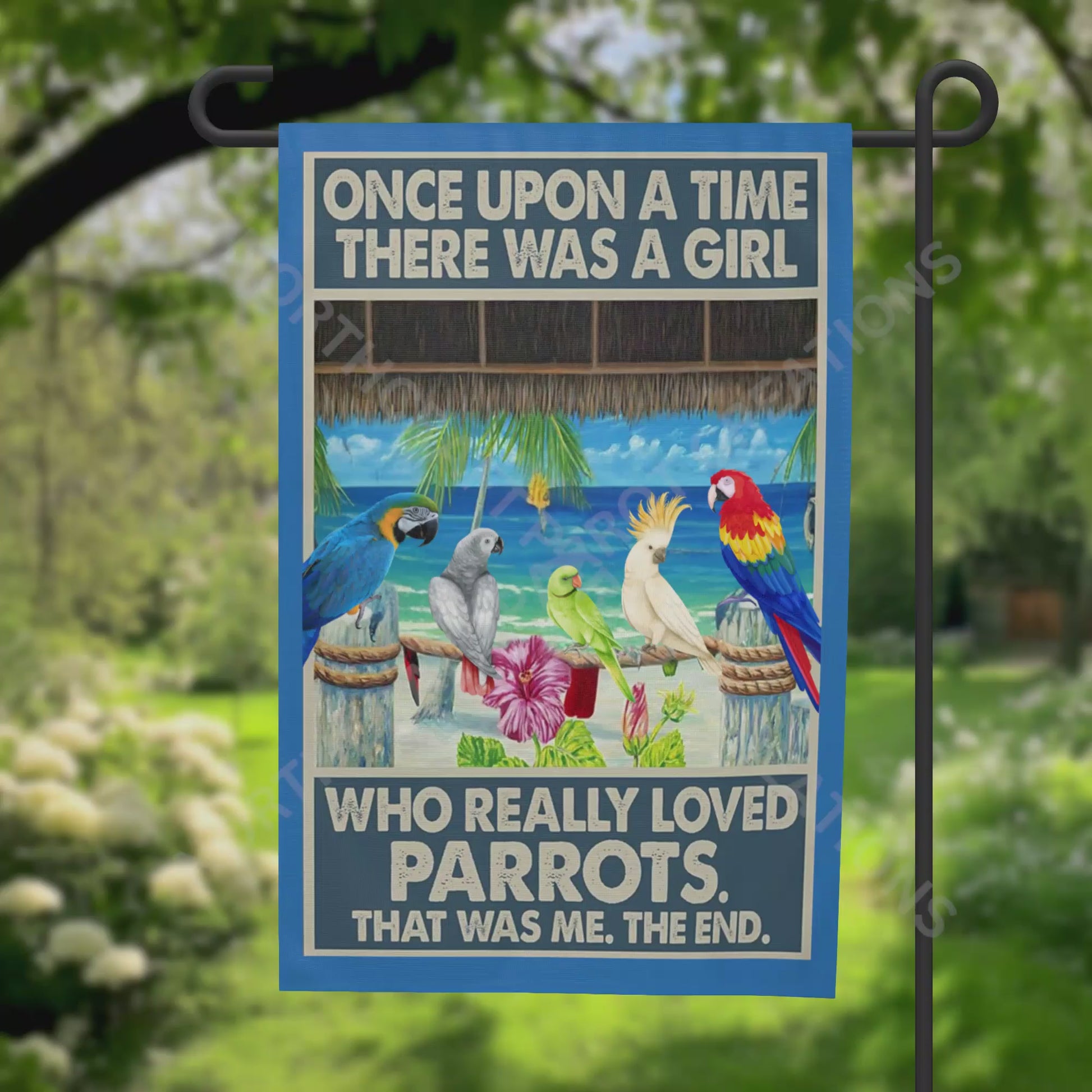 Once Upon a Time There was a Girl Who Loved Parrots Garden Flag