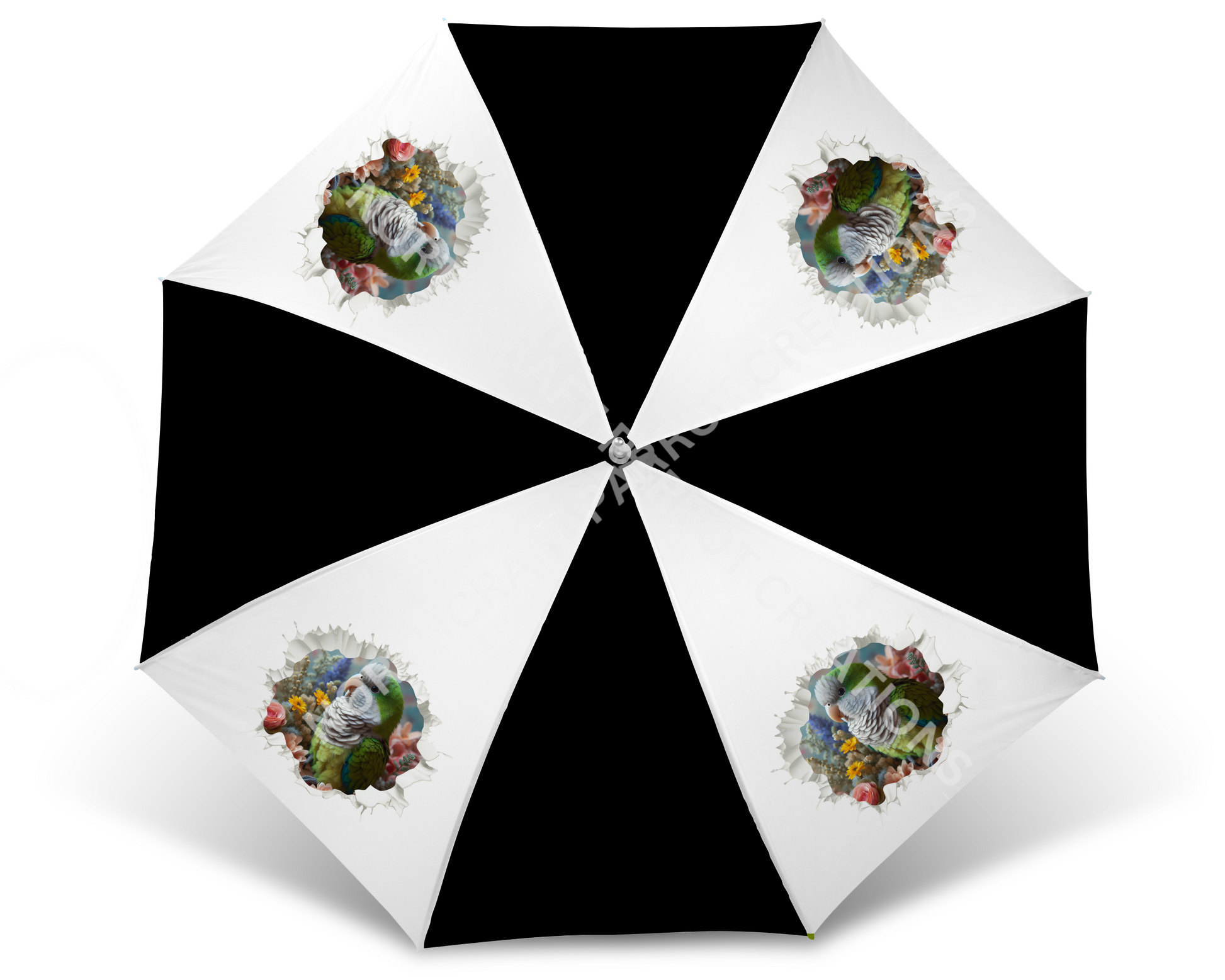 Add a splash of fun to rainy days with a unique umbrella. Featuring a playful green Quaker parrot that appears to peek through a vibrant floral canopy, this umbrella turns every shower into a delightful escape. Lightweight and sturdy, it’s a cheerful way to brighten your weather and your mood.