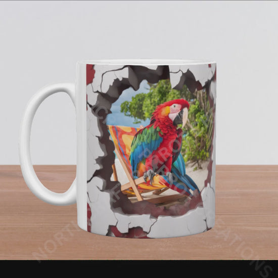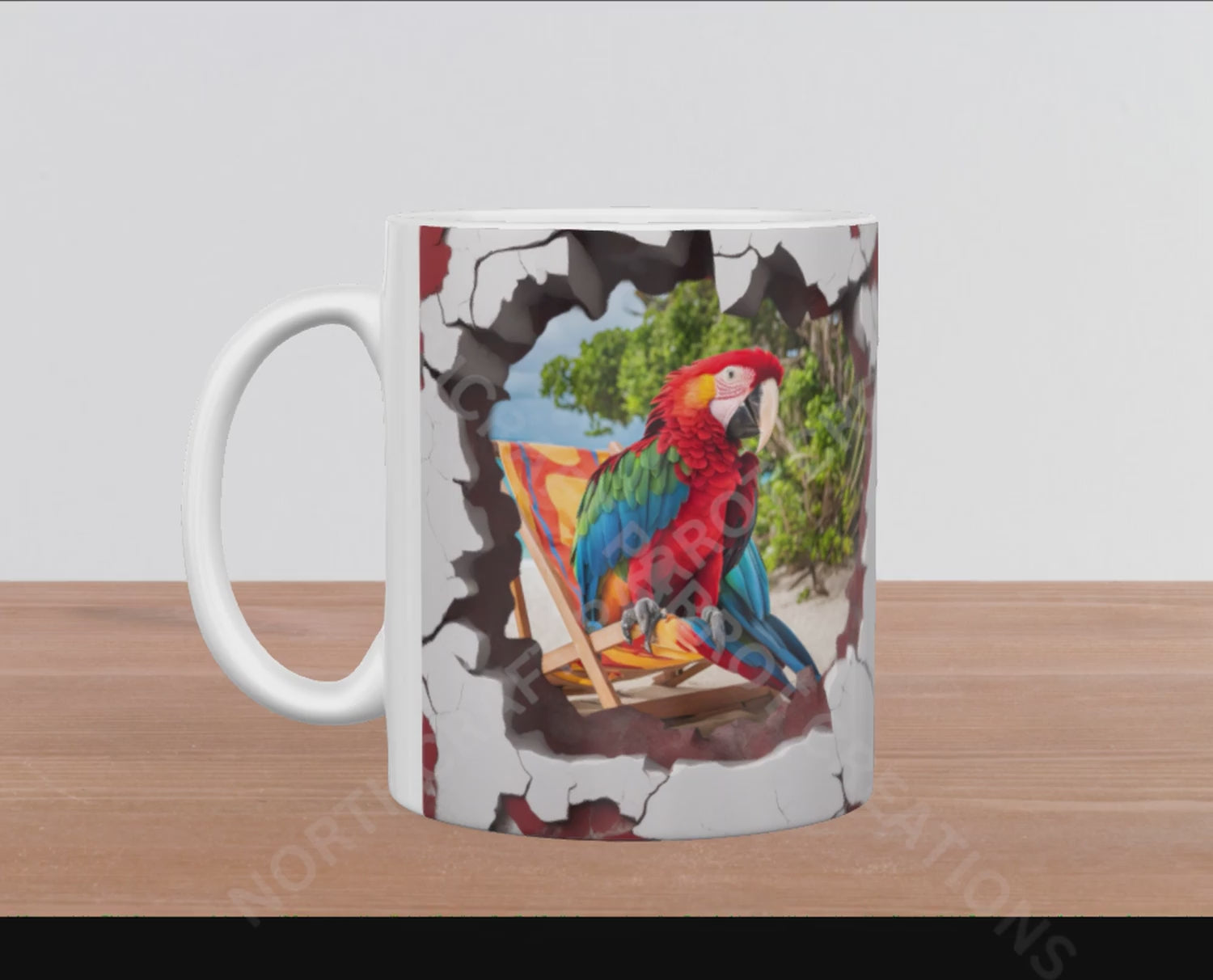Scarlet Macaw Cracked Wall Beach Scene 15oz Ceramic Mug