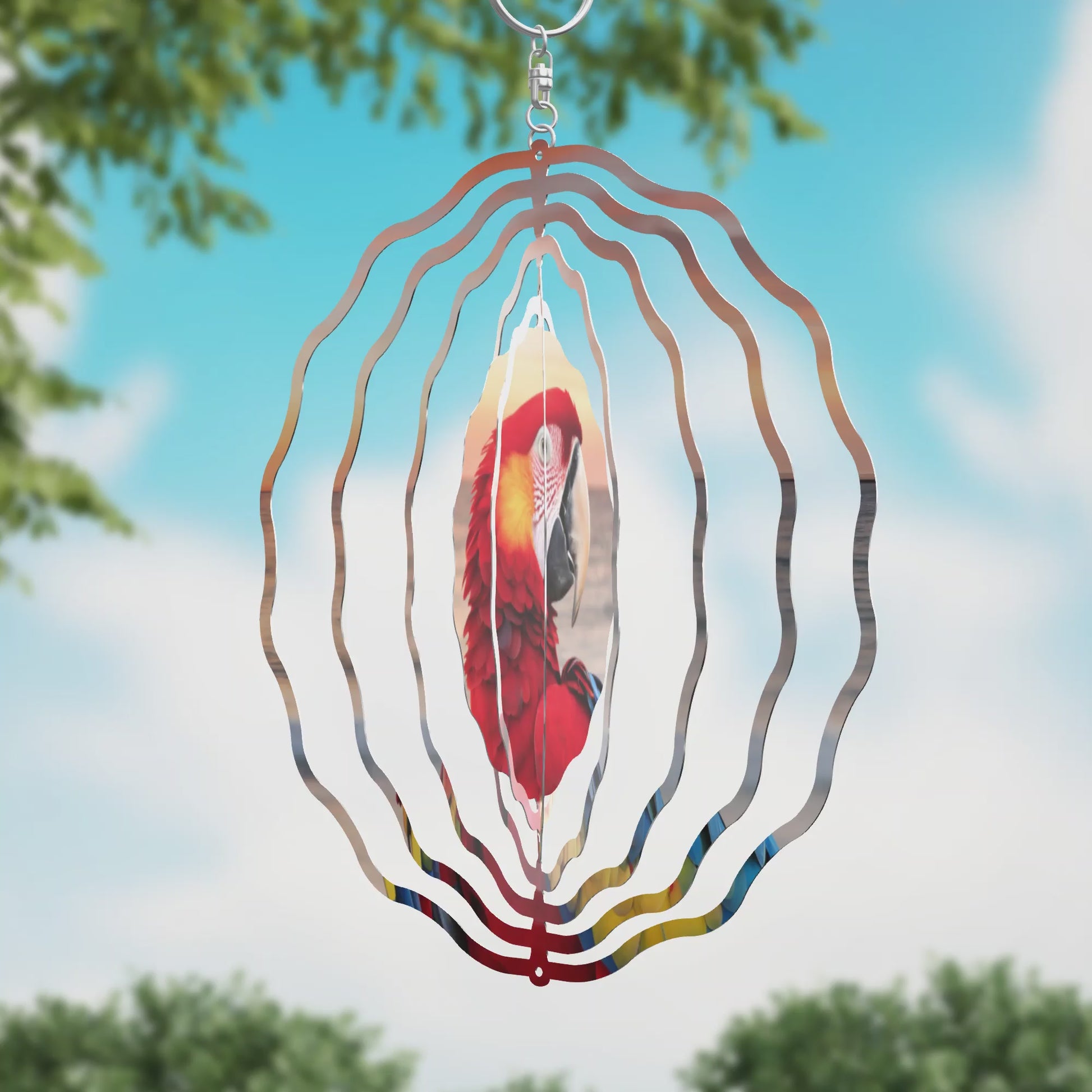 Enhance your outdoor ambiance with the Scarlet Macaw wind spinner, available in 8" or 10". Featuring a radiant Scarlet Macaw set against a serene beach sunset, its elegant design and graceful motion bring a refined tropical touch to your garden or patio. This sophisticated piece adds subtle color and tranquility to any outdoor setting.