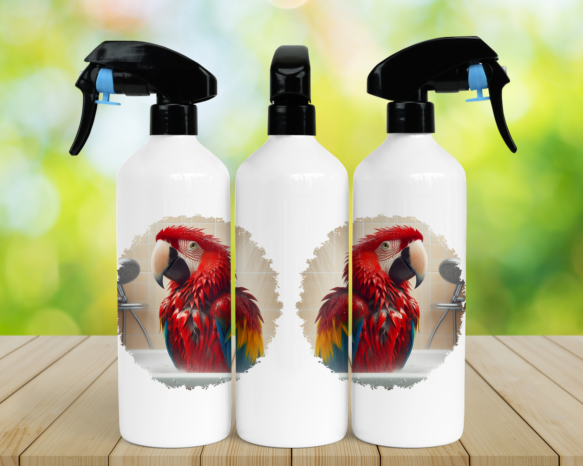 Scarlet Macaw Round Image in Bathtub 16oz Misting Spray Bottle