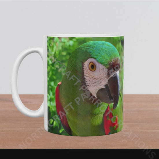 This elegant 15oz ceramic mug features a stunning mirrored headshot of a Severe Macaw, showcasing its vibrant feathers on both sides. Perfect for bird lovers, the vivid colors bring a touch of natural beauty to your daily routine while offering a generous capacity for your favorite beverages.