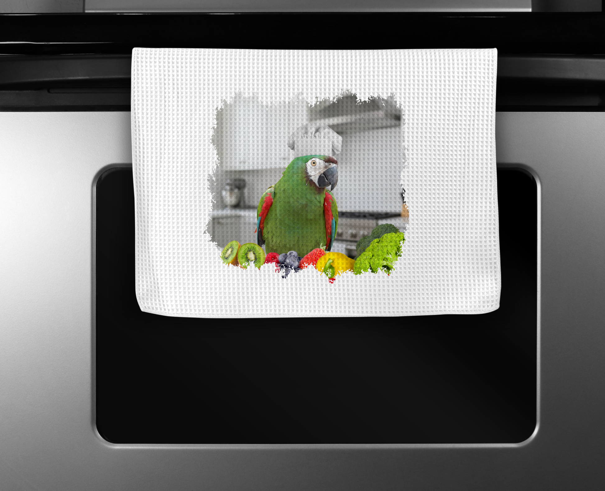 Elevate your kitchen ambiance with this microfiber towel featuring a striking Severe Macaw adorned in a chef’s hat amidst a minimalist kitchen backdrop. Ideal for adding a refined touch, it combines vibrant design with practical absorbency, making it both an artistic centerpiece and an essential kitchen accessory.