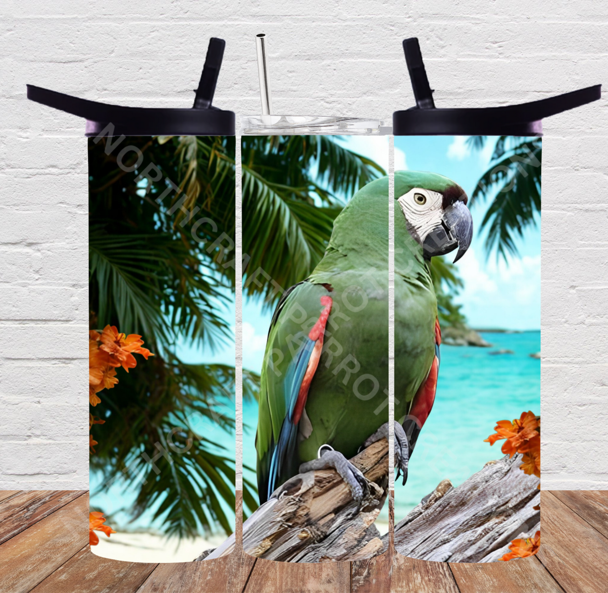 Severe Macaw on a Log on the Beach 20oz or 30oz Tumbler
