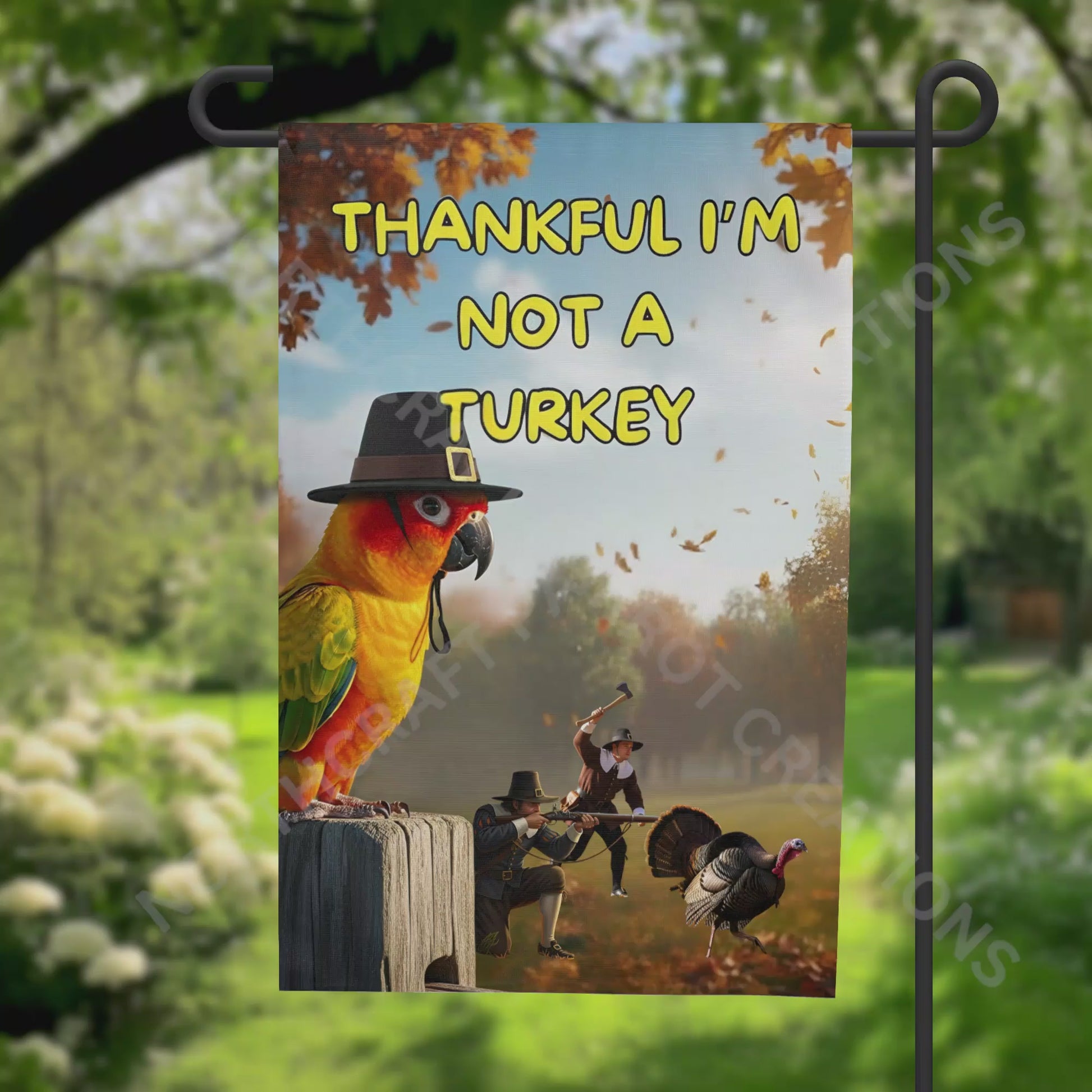 Sun Conure "Thankful I'm Not a Turkey" Thanksgiving Garden Flag